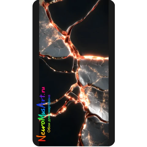 Черная поверхность, расколотая огненными трещинами, из которых прорывается свет раскалённой лавы. Атмосфера мощи и энергии создаёт динамичный эффект, идеально подходящий для стильных UHD 4K обоев. Формат 9×20 подходит для всех современных смартфонов, включая версии со скруглёнными краями. A black surface split by fiery cracks, glowing with molten energy. The atmosphere of power and intensity creates a dynamic effect, perfect for stylish UHD 4K wallpapers. Format 9×20 is suitable for all modern smartphones, including curved-edge versions.