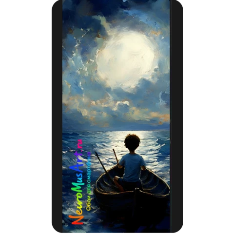 Картина в стиле цифровой живописи: мальчик в лодке гребёт по морю навстречу сияющей луне. Мягкие мазки и глубокая палитра создают атмосферу мечты, одиночества и надежды. UHD 4K обои в формате 9×20 идеально подходят для смартфонов, включая модели со скруглёнными краями. Digital painting: a boy in a boat rows across the sea towards the glowing moon. Gentle brushstrokes and deep tones convey a dreamlike atmosphere of solitude and hope. UHD 4K wallpaper in 9×20 format, perfect for smartphones including curved-edge models.