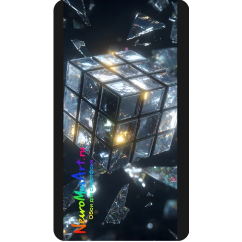 Прозрачный хрустальный куб переливается множеством граней, отражая световые потоки и создавая эффект загадочной многомерности. A transparent crystal cube refracts light through its facets, creating the effect of enigmatic multidimensionality.