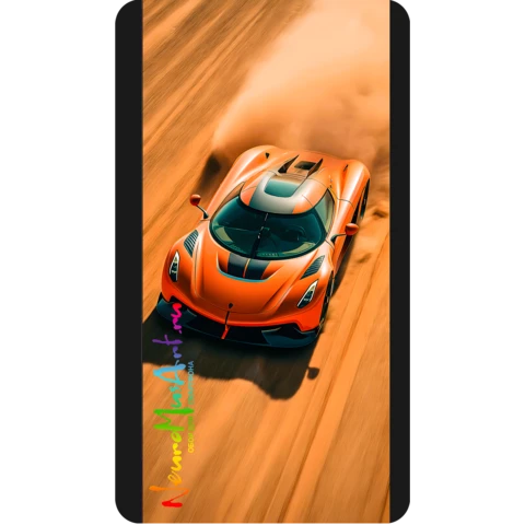 UHD 4K обои для флагманских смартфонов (Samsung S24 Ultra, iPhone 16 Pro и др.): огненно-оранжевый суперкар мчится по песчаной трассе, оставляя за собой вихрь пыли. Атмосфера скорости, драйва и адреналина. UHD 4K wallpapers for flagship smartphones (Samsung S24 Ultra, iPhone 16 Pro, etc.): a blazing orange supercar racing through a sandy track, leaving a whirlwind of dust. Pure thrill, speed, and adrenaline.