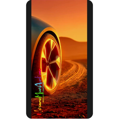 UHD 4K обои для флагманских смартфонов (Samsung S24 Ultra, iPhone 16 Pro и др.): яркое колесо автомобиля, сияющее в лучах заката. Атмосфера свободы, пути и бесконечного драйва. UHD 4K wallpapers for flagship smartphones (Samsung S24 Ultra, iPhone 16 Pro, etc.): a glowing car wheel shining in the sunset light. An atmosphere of freedom, journey, and endless drive.