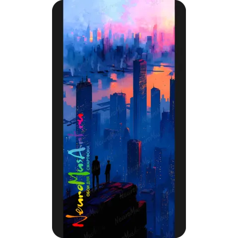 Яркие обои для смартфона в UHD 4K качестве с видом на величественный город в свете заката. Атмосфера вдохновения и стремления вперёд. Vivid UHD 4K smartphone wallpaper depicting a majestic city glowing in sunset light. An atmosphere of inspiration and ambition.