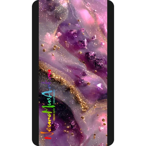 Кристаллические абстрактные обои с аметистом и золотой пылью. Abstract crystal wallpaper with amethyst tones and golden dust.