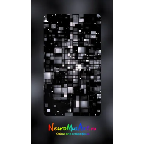 Строгие обои для смартфона в UHD 4K качестве с переплетением чёрно-серых прямоугольных панелей, напоминающих фасады небоскрёбов. Атмосфера урбанистической строгости и цифровой структуры. Minimalist UHD 4K smartphone wallpaper with interlaced black and grey rectangular panels, reminiscent of skyscraper facades. Atmosphere of urban austerity and digital structure.