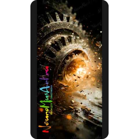 Огромные металлические шестерни разрываются в вихре искр и пламени, символизируя мощь и разрушительную энергию индустрии. Massive metal gears explode in a whirlwind of sparks and fire, symbolizing the power and destructive energy of industry.