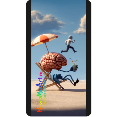 Юмористические UHD 4K обои в стиле 3D-анимации: мозг отдыхает на пляже под зонтом с коктейлем в руке. Яркая и ироничная композиция поднимает настроение и добавляет экрану лёгкости. Подходят для всех современных смартфонов в формате 9×20, включая версии со скруглёнными краями. Humorous UHD 4K wallpaper in 3D animation style: a brain relaxes on the beach under an umbrella with a cocktail in hand. The bright and ironic composition lifts your mood and adds lightness to your screen. Suitable for all modern smartphones in 9×20 format, including versions with rounded edges.